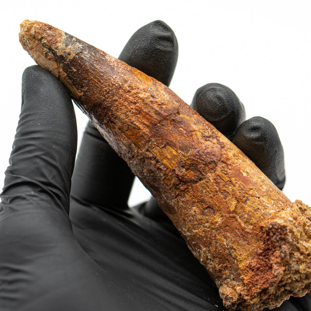 Please note: ALL Spinosaurus teeth will show some sign of repair. In addition, to protect the specimen during transit every Spinosaurus tooth is individually wrapped.