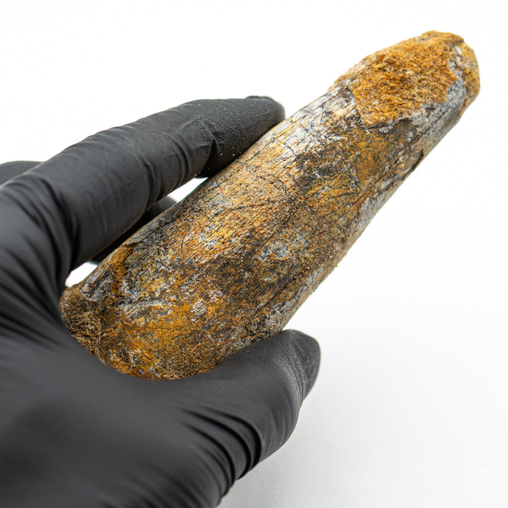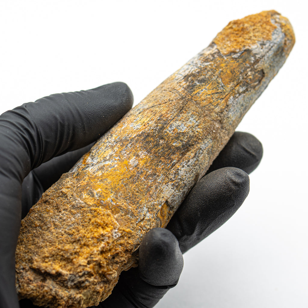 Please note: ALL Spinosaurus teeth will show some sign of repair. In addition, to protect the specimen during transit every Spinosaurus tooth is individually wrapped.