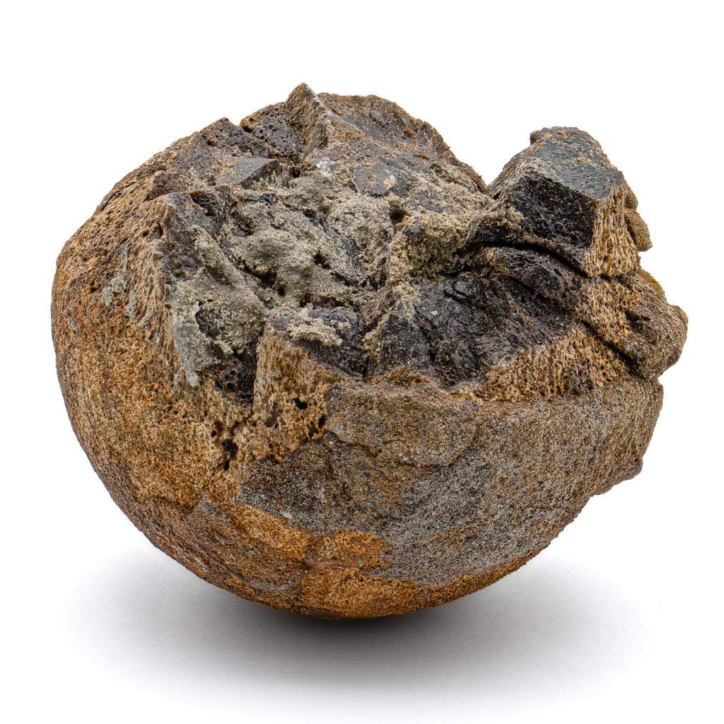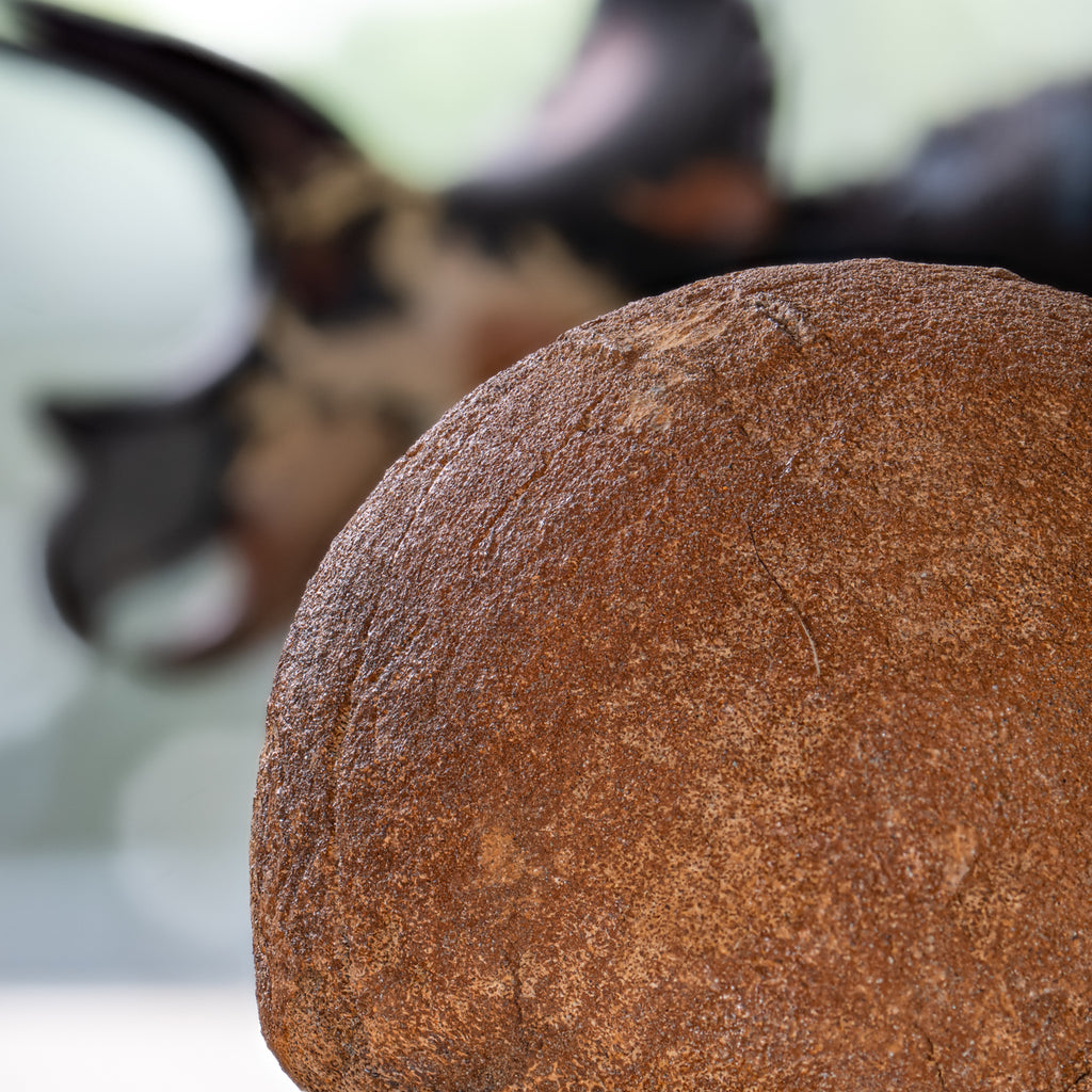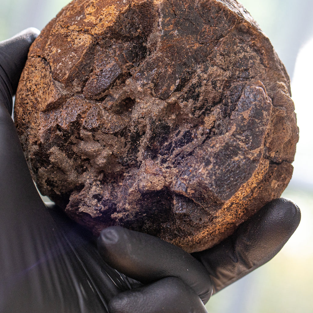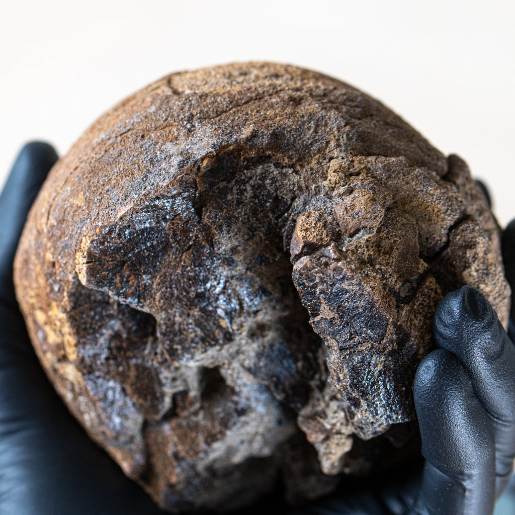 This specimen is a fossilized Triceratops neck joint from the Lance Formation in South Dakota, dating to about 67 million years ago. These ball-and-socket joints allowed for high mobility in the skull, letting the triceratops forage freely, or perhaps swing its horns during a fight.