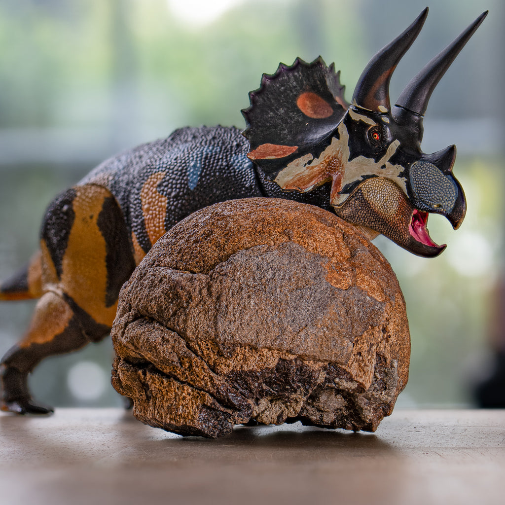With their large frill, sharp horns, and quadrupedal stance, Triceratops is one of the most iconic dinosaurs of the Mesozoic Era. They appear in the fossil record 68 million years ago, an intimidating sight at the end of the Age of Dinosaurs.