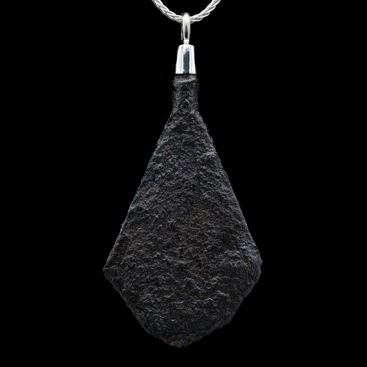 This specimen is a 3.319" Viking arrowhead mounted as a pendant necklace. The arrowhead dates to roughly 900 CE.