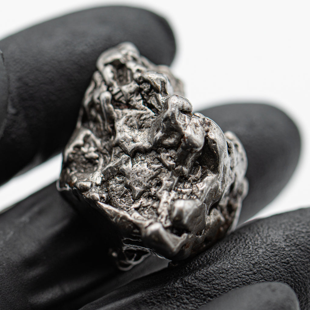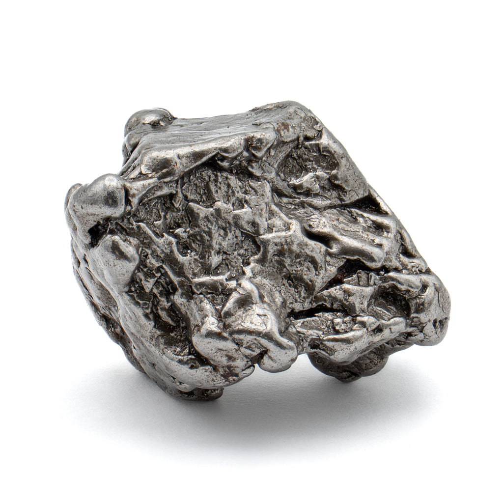 This specimen is a complete 32.09g Campo Del Cielo meteorite from Argentina. The IAB meteorite is thought to have fallen in 2500 BCE and was a source of valuable metals as well as an inspiration for creation myths. The impact area was originally called Piguem Nonralta by the locals, though Spanish colonists renamed it in 1576 CE as Campo del Cielo, or, "Field of Heaven."