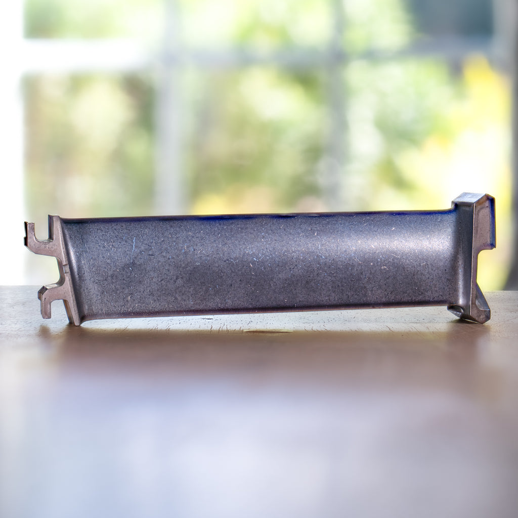 Recovered from one of the jet engines powering the sleek ship, this specimen is a complete Concorde Jet Rotor Turbine Blade!