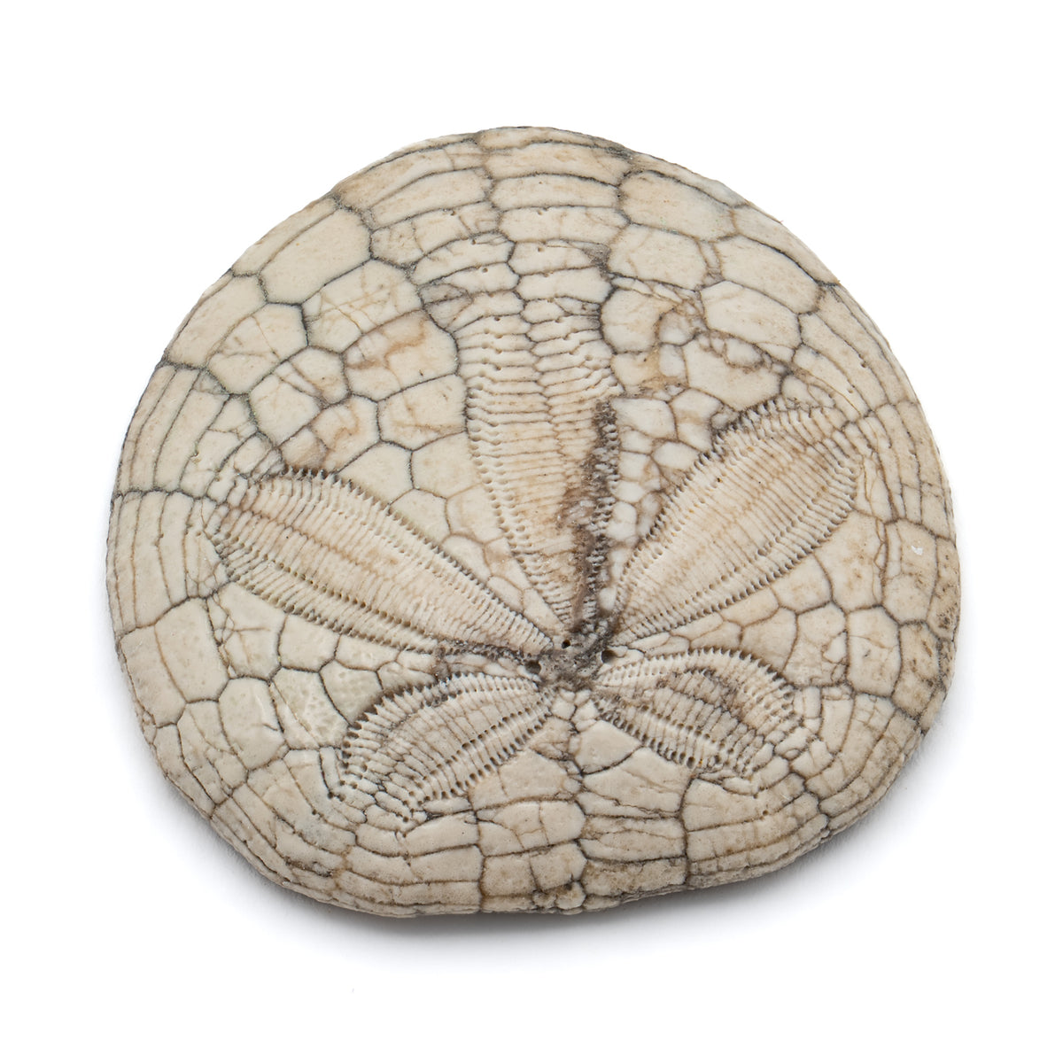 Fossilized at the bottom of the sea floor over 5,000,000 years ago, this Dendraster is a window into the ocean's past. The body plan of the animal has been preserved in beautiful detail, with their intricate skeletons still clearly visible.