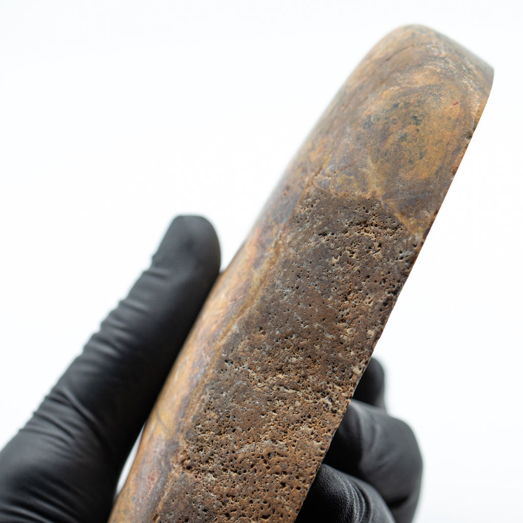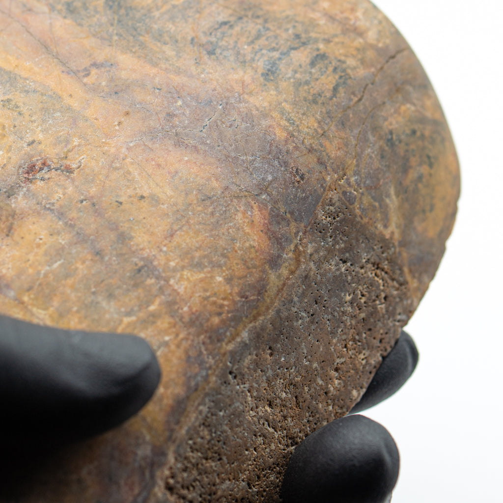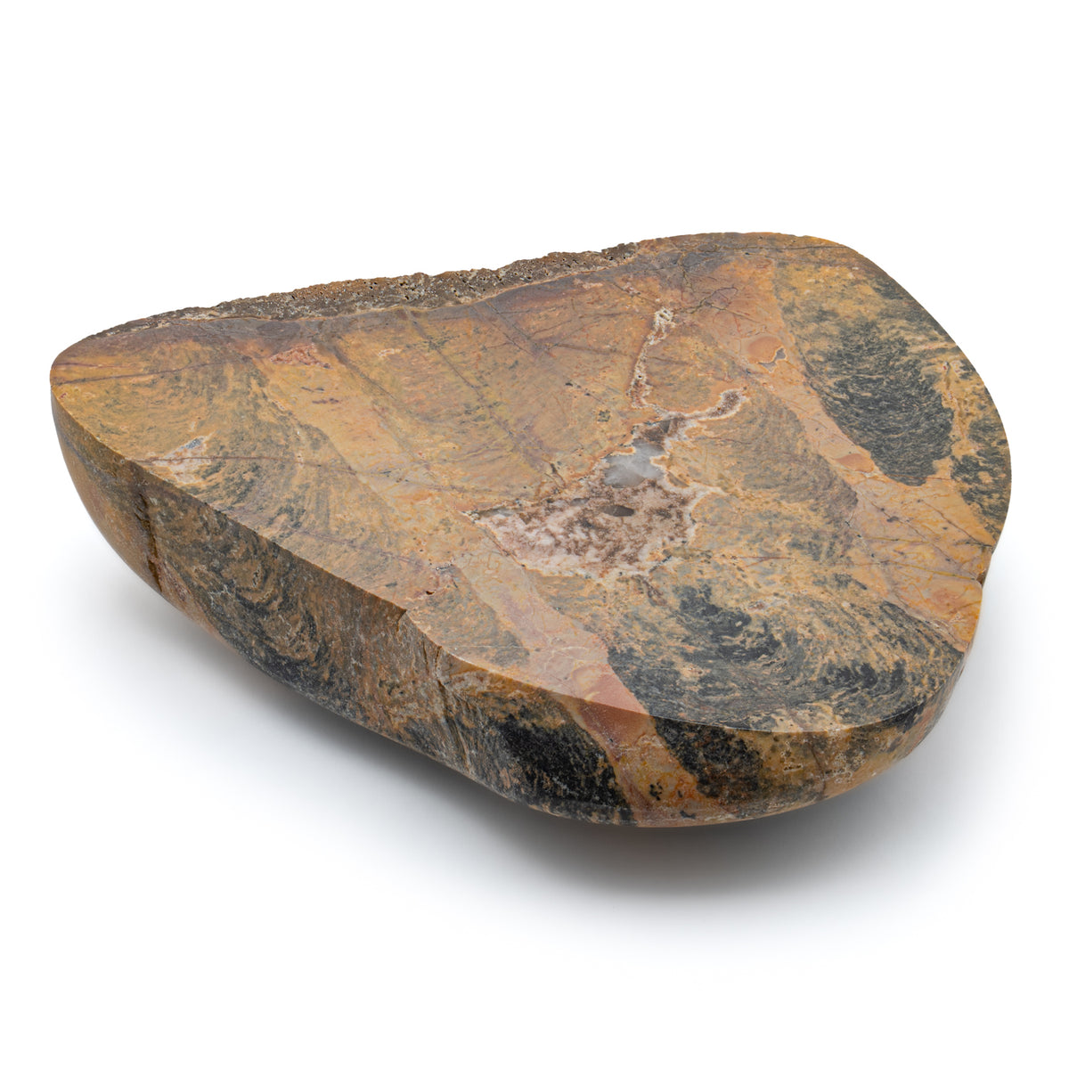 This specimen is a piece of Duck Creek Dolomite from the Ashburton Basin in Western Australia. It dates to the Proterozoic Eon 1.8 billion years ago and shows stromatolite evidence of Pilbaria perplexa, a microbe that may have aided in the Dolomite's formation.