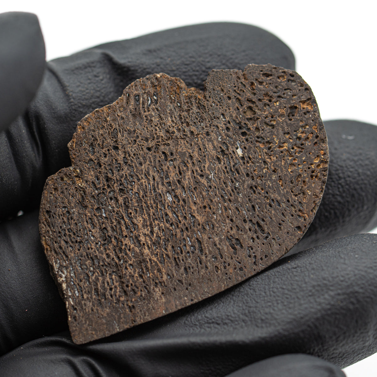 This specimen is a 1.645" fossil bone section from an Iguanodon from the Weald Clay deposits on the Isle of Wight. It dates back 125,000,000 years.