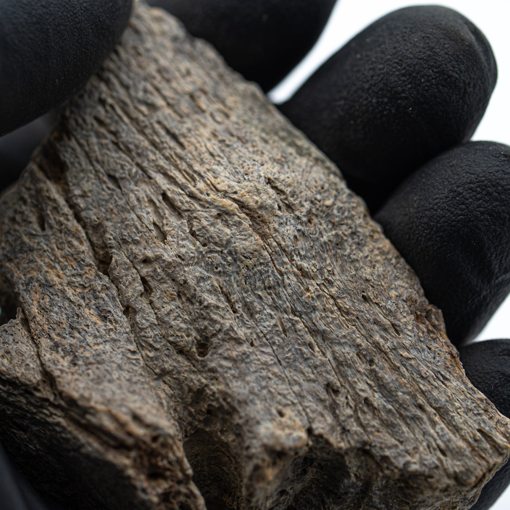 This specimen is a fossilized bone section from the Kritosaurus genus of the Hadrosaurid family. It measures 2.544" and dates to around 77 million years ago.