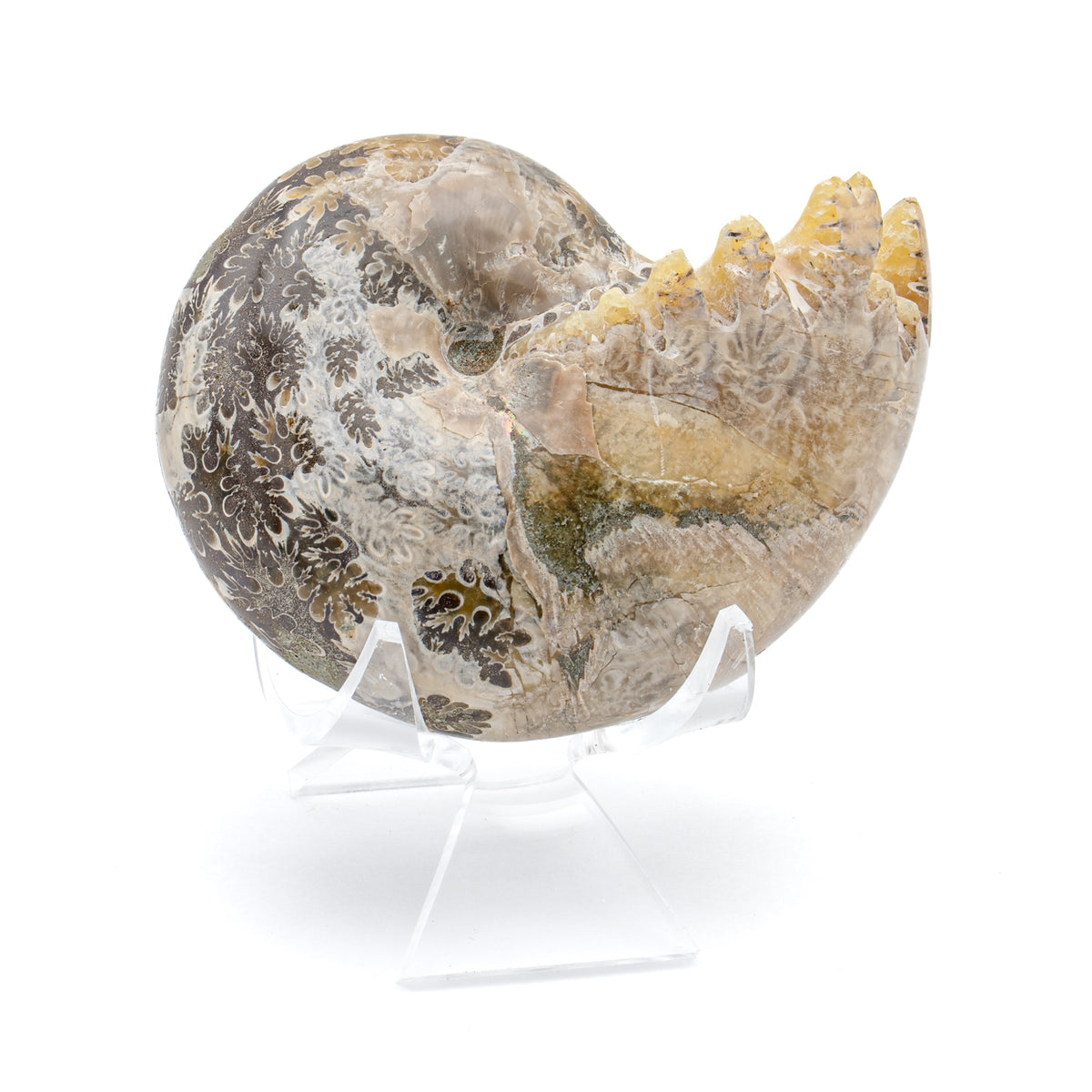 Each Sutured Ammonite is sold individually and comes with a stand for display. A small informational card that serves as certificate of authenticity is also included.