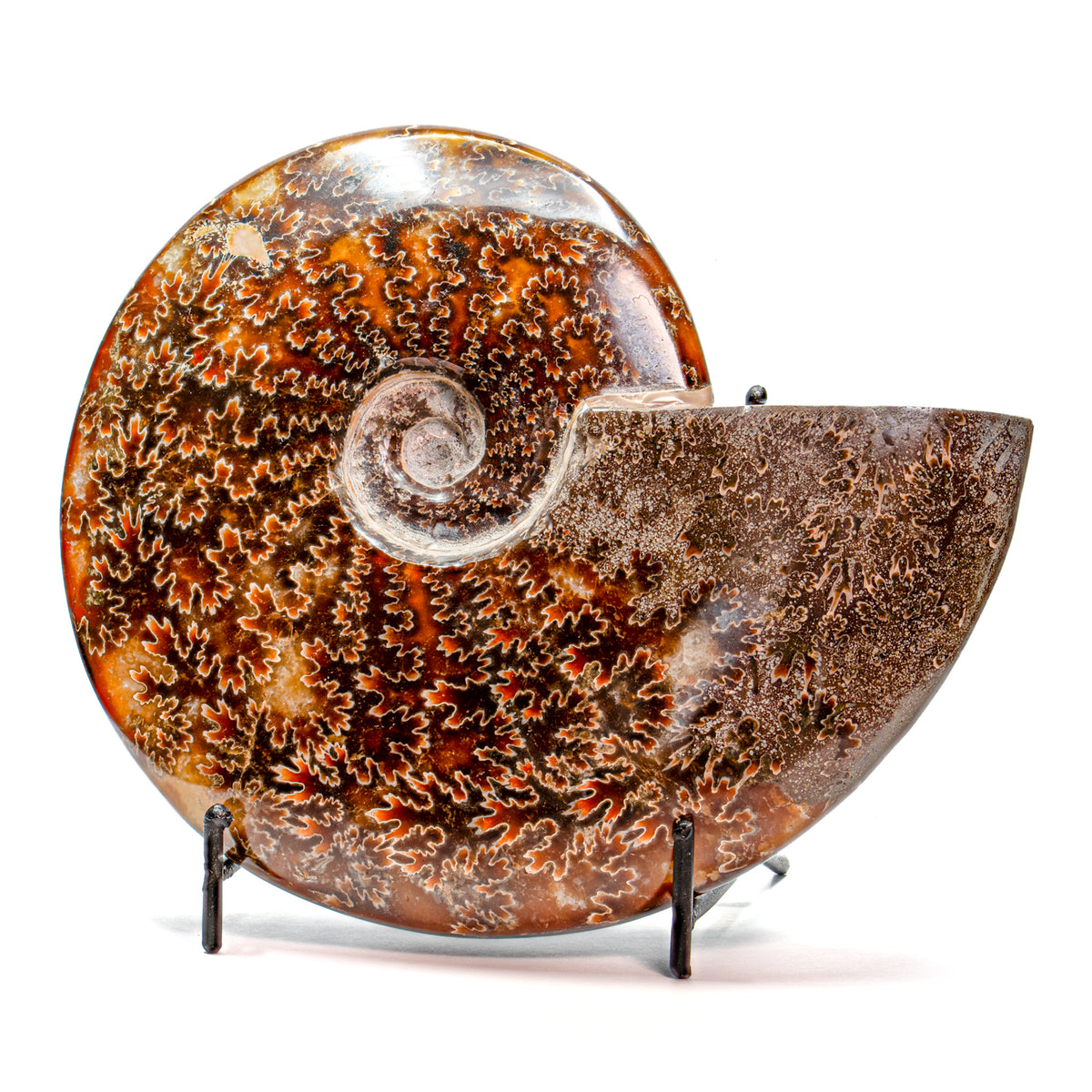 Ammonites are an extinct group of cephalopods that entered the fossil record 400 million years ago. This specimen is a 6.57" polished Cleoniceras fossil from Madagascar.