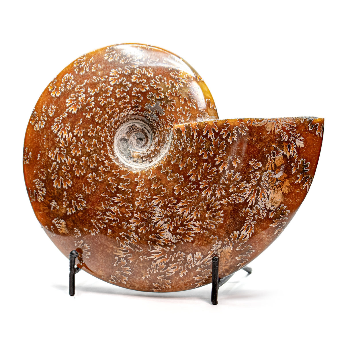 Each Sutured Ammonite is sold individually and comes with a stand for display. A small informational card that serves as certificate of authenticity is also included.
