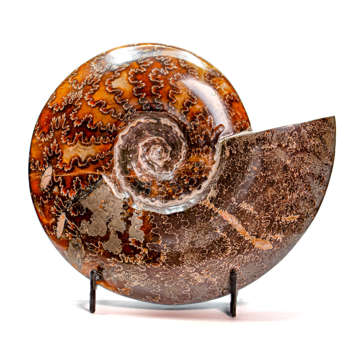 Each Sutured Ammonite is sold individually and comes with a stand for display. A small informational card that serves as certificate of authenticity is also included.