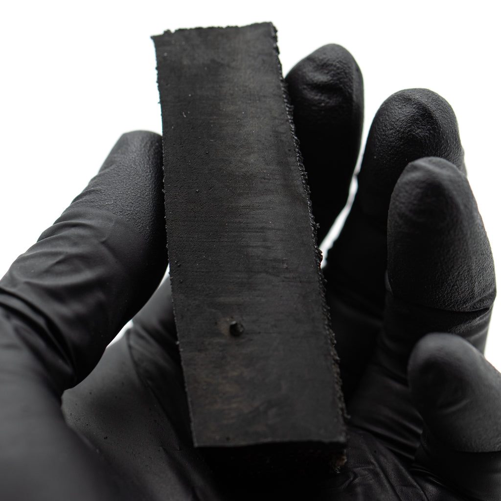 This specimen is a 2.765" mission-flown nose landing gear tire fragment from the Space Shuttle Columbia (OV-102). Serial number verification against public information indicates the tire was removed from service after Columbia's 13th mission (STS-52).