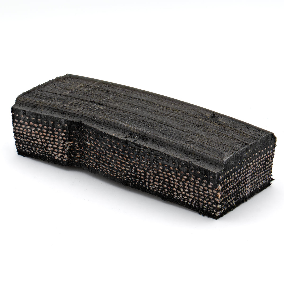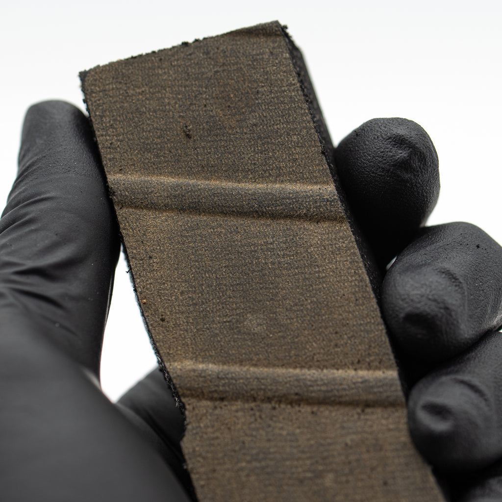 This specimen is a 3.388" mission-flown nose landing gear tire fragment from the Space Shuttle Columbia (OV-102). Serial number verification against public information indicates the tire was removed from service after Columbia's 13th mission (STS-52). This piece includes skid marks from the touchdown of the Space Shuttle during landing.