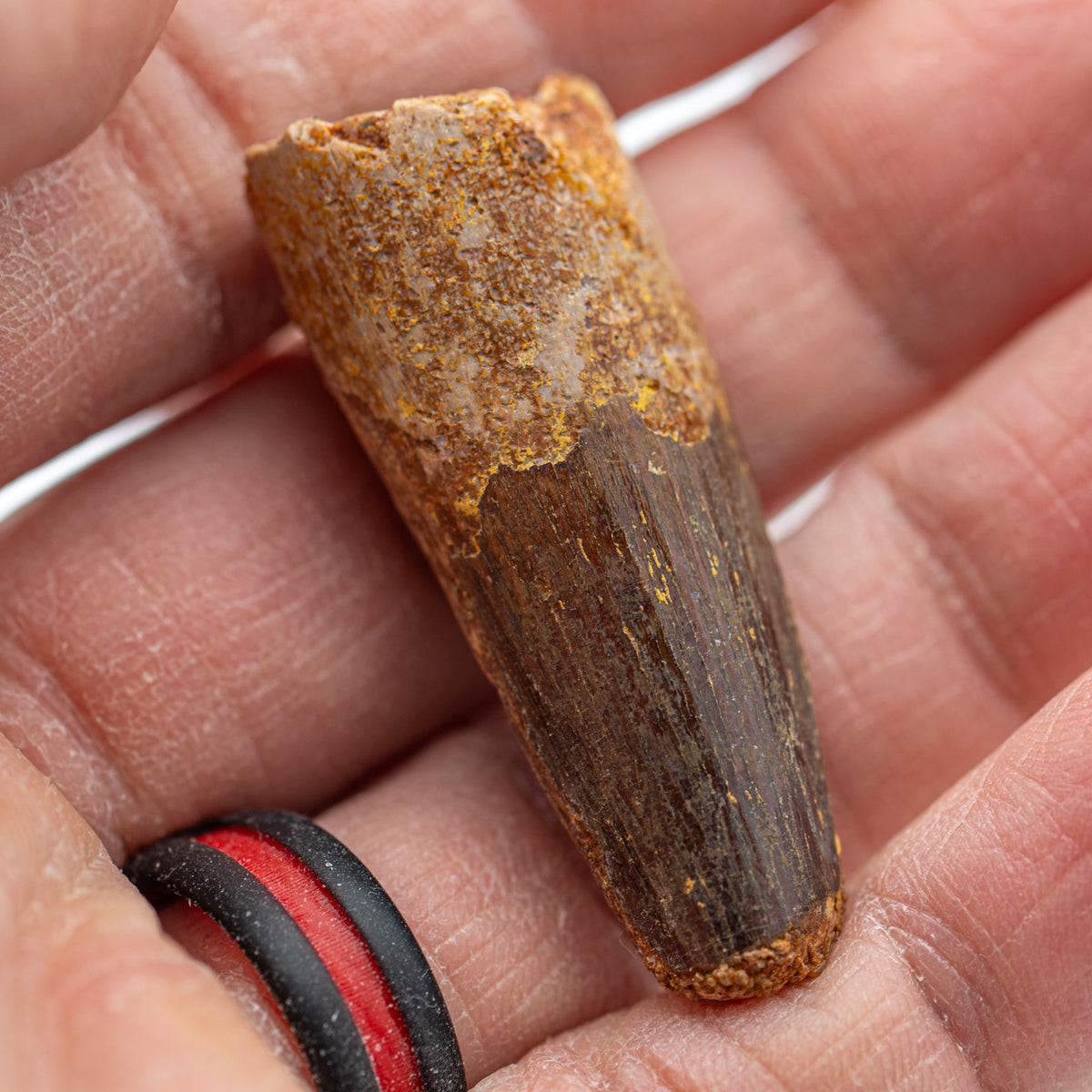 Please note: ALL Spinosaurus teeth will show some sign of repair. In addition, to protect the specimen during transit every Spinosaurus tooth is individually wrapped.