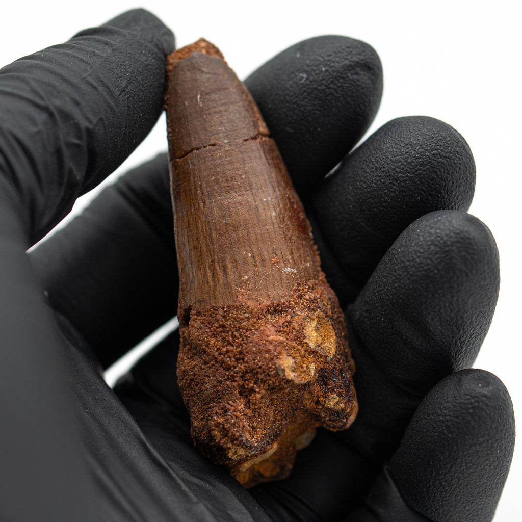 Please note: ALL Spinosaurus teeth will show some sign of repair. In addition, to protect the specimen during transit every Spinosaurus tooth is individually wrapped.