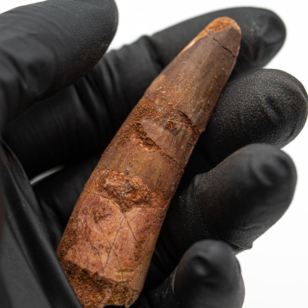 Please note: ALL Spinosaurus teeth will show some sign of repair. In addition, to protect the specimen during transit every Spinosaurus tooth is individually wrapped.