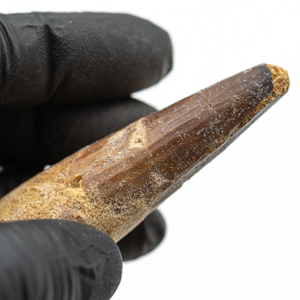 Please note: ALL Spinosaurus teeth will show some sign of repair. In addition, to protect the specimen during transit every Spinosaurus tooth is individually wrapped.
