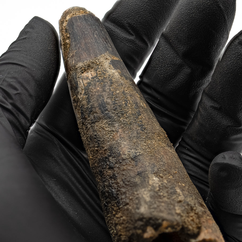 With jaws that carried dozens of teeth and the ability to grow more through its life, Spinosaurus truly had no fears about using the full strength of its bite force. These fossil specimens are a fine example of Spinosaurus's diet and hunting behaviors. While quite thick at the root end, they have become blunted at the tip, often due to repeated use and natural wear of the tooth.