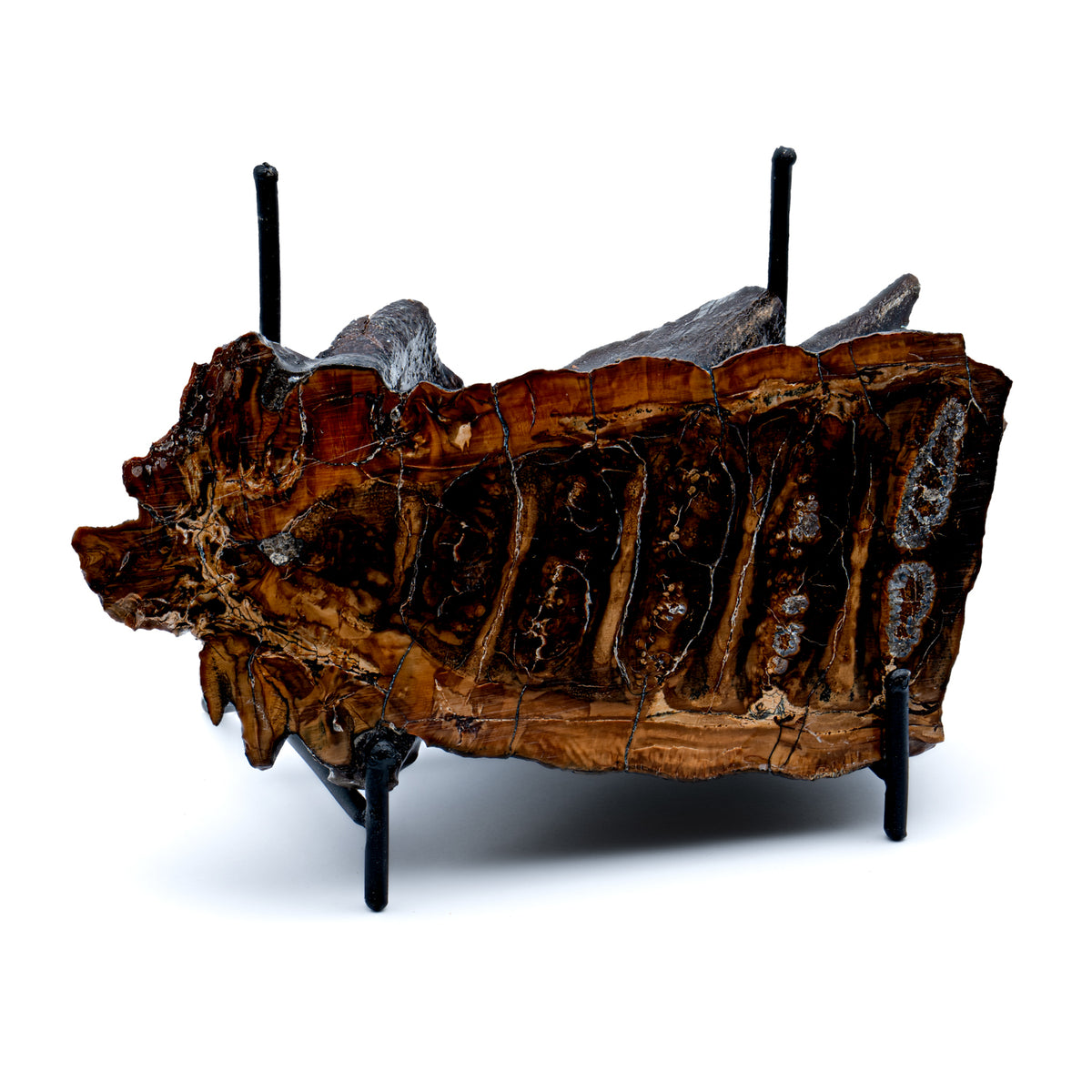 This specimen is a beautifully polished cross-section of a Woolly Mammoth tooth. During the Pleistocene, these majestic creatures roamed the Earth and were a great bounty to our ancient ancestors.